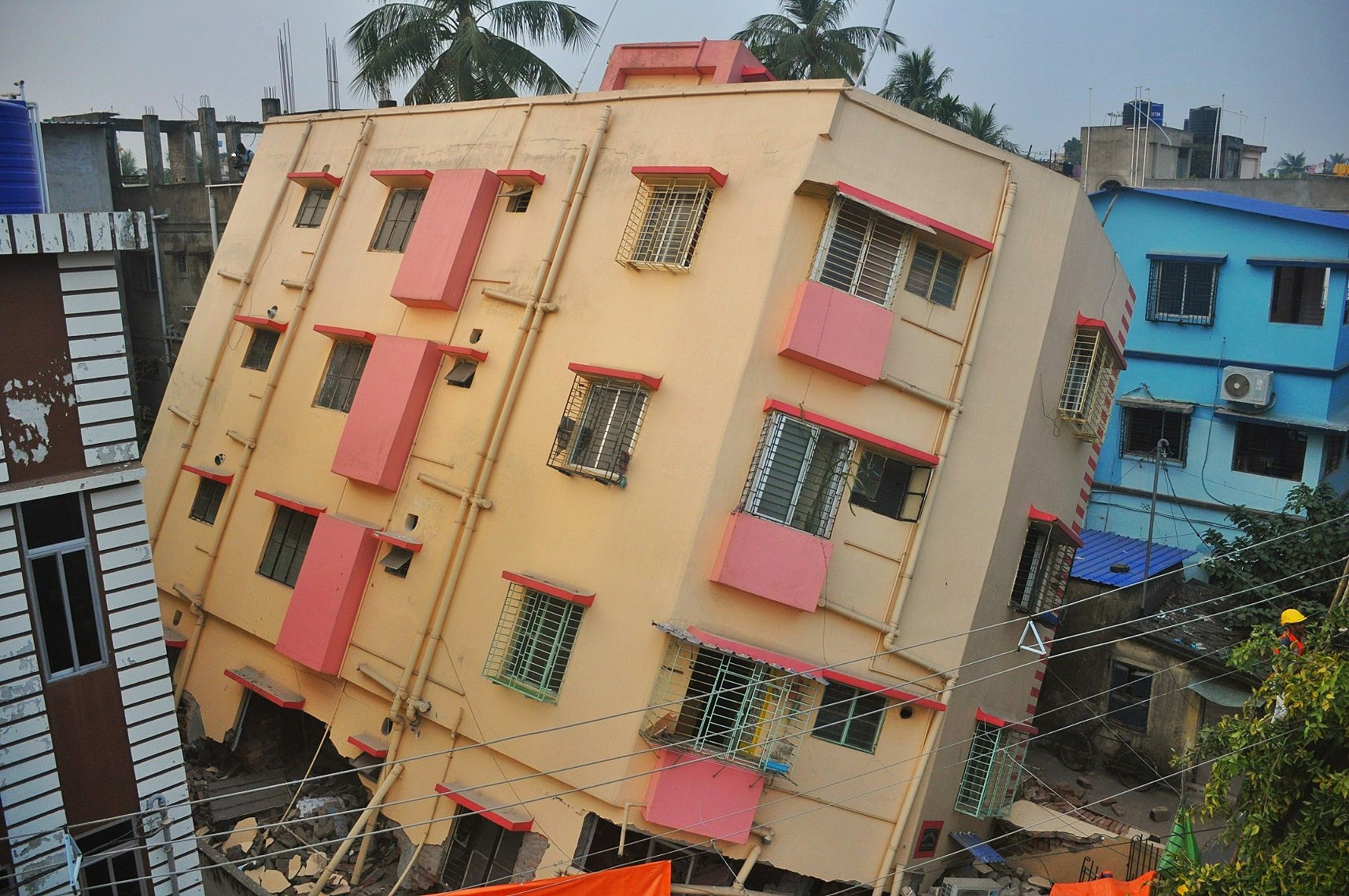 पश्चिम बंगाल के कोलकाता में एक चार मंजिला बिल्डिंग को झुकने की घटना सामने आई है। रिहाइशी इलाके में एक बिल्डिंग को जैक से उठाने के चक्कर में यह हादसा हो गया। चार मंजिला बिल्डिंग के झुकने से आसपास के लोग दशहत में आ गए हैं। गनीमत यह रही है कि यह चार मंजिला बिल्डिंग पूरी तरह से धराशायी नहीं हुई। इस घटना का एक वीडियो भी सामने आया है जो सोशल मीडिया पर वायरल हो रहा है। प्रारंभिक जांच में सामने आया है इस बिल्डिंग की नींव को मजबूत करने का काम चल रहा था।