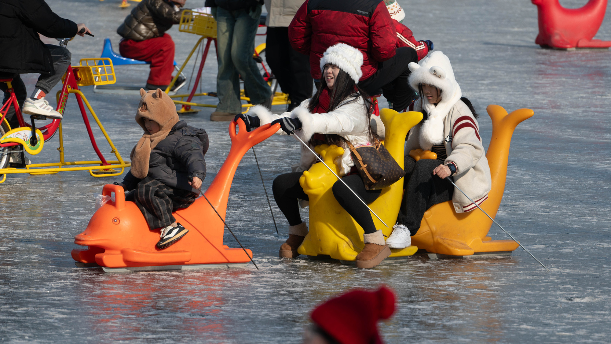 पेइचिंग शि छआ हाई आइस स्केटिंग रिंक में खेलते लोग