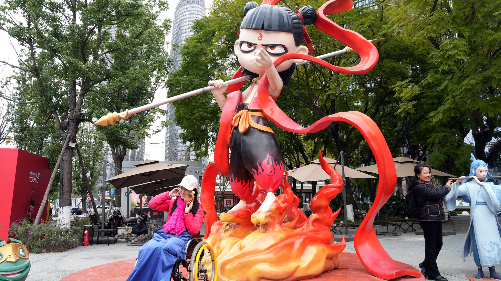 चीन के सछ्वान प्रांत के छनतू शहर में नेज़ा की मूर्ति के सामने लोग तस्वीरें लेते हुए। उस दिन, फिल्म "नेज़ा-2" का कुल बॉक्स ऑफिस 5.776 अरब चीनी युआन से अधिक हो गया, जो चीनी फिल्म इतिहास में बॉक्स ऑफिस सूची में पहले स्थान पर पहुंचा। छनतू की सड़कों पर नेज़ा की मूर्तियां और फिल्म "नेज़ा-2" की निर्माण कंपनी कोकोडो एनीमेशन का स्थान, नेटिजन प्रशंसकों के लिए चेक-इन स्पॉट बन गए हैं।