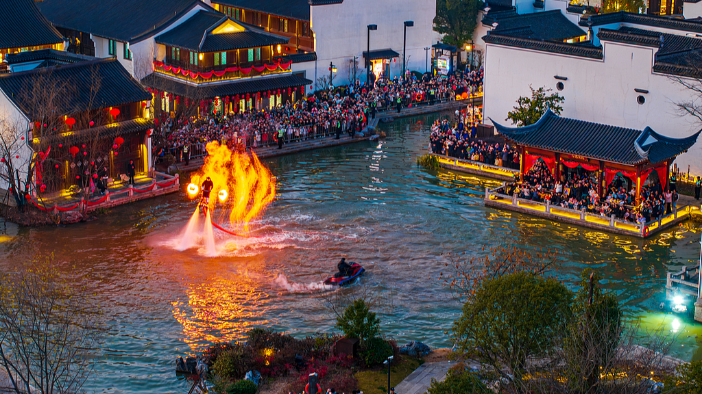 ये तस्वीरें रविवार यानी 16 फरवरी को पूर्वी चीन के चच्यांग प्रांत की राजधानी हांगचो शहर में ली गई हैं। फोटो में आप देख सकते हैं कि हांगचो शहर के यूहांग ज़िले में कलाकारों ने एयर-पावर्ड फ्लाई बोर्ड के ज़रिए तलाब के ऊपर “हवोहु”यानी फ़ाइल पोर्ट नाम की लोक कला का मंचन किया। कलाकार तलाब के ऊपर फ्लाईबोर्डिंग करने के साथ साथ गर्म कोयले से भरे लोहे के जाल को हिलाते हैं, जिससे चिंगारी निकलती है, जो आतिशबाजी के चकाचौंध भरे प्रदर्शन जैसा लगता है। इस शानदार प्रदर्शन ने बड़ी संख्या में पर्यटकों को आकर्षित किया है। बता दें कि एयर-पावर्ड फ्लाई बोर्ड एक अत्याधुनिक उपकरण है जो लोगों को हवा में उड़ने या पानी के ऊपर तैरने का अनुभव प्रदान करता है। इस गतिविधि को फ्लाईबोर्डिंग कहा जाता है, जो एक तरह का वाटर स्पोर्ट और एडवेंचर एक्टिविटी है।