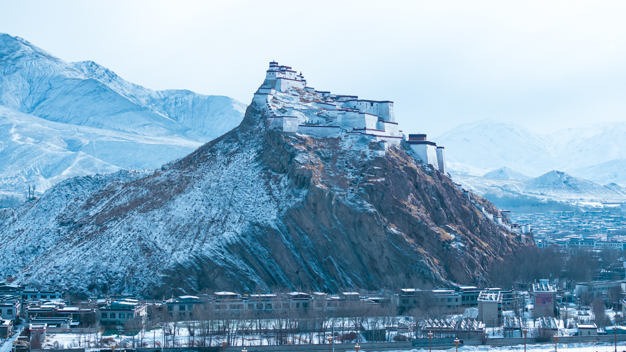 शिगात्से: बर्फ से ढकीं ग्यांत्से महल की इमारतें