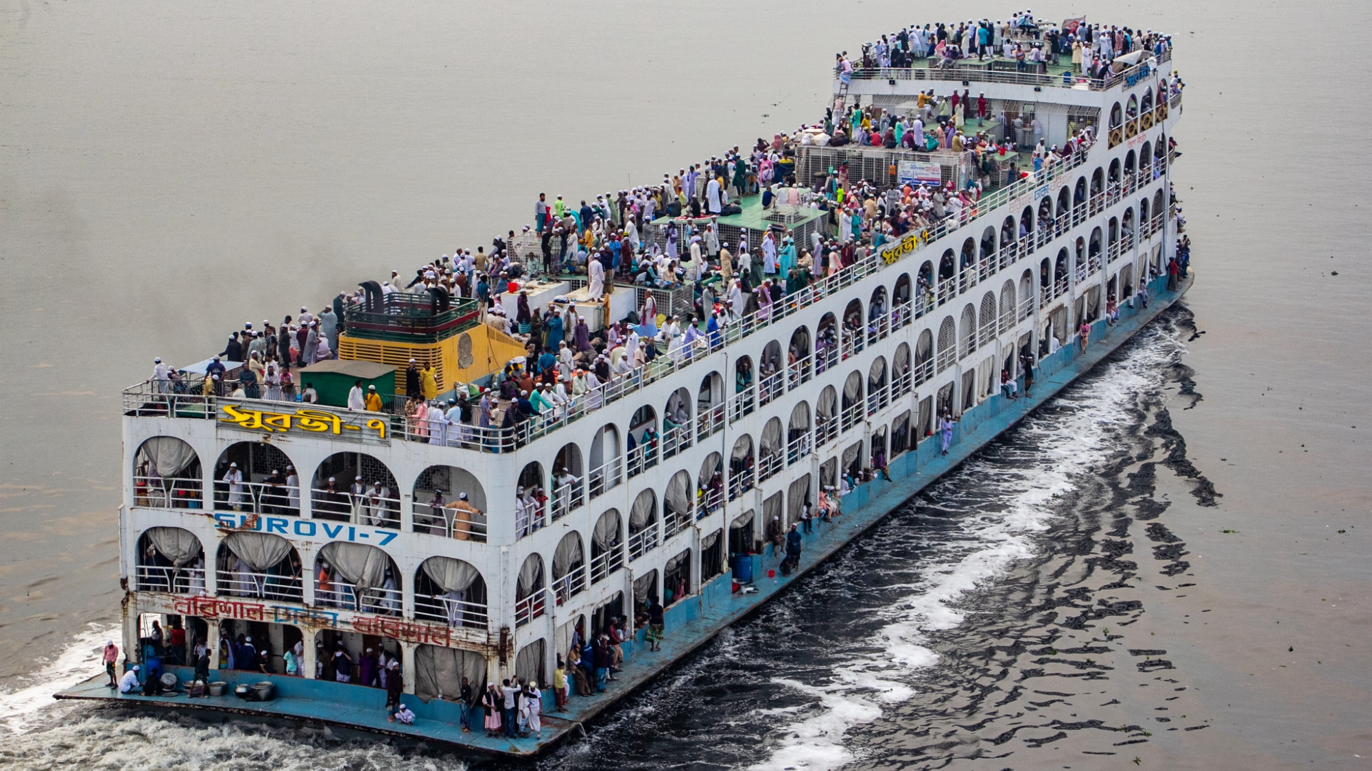 22 फरवरी को बांग्लादेश के ढाका में तीर्थयात्रियों को लेकर एक बड़ा जहाज लौटा