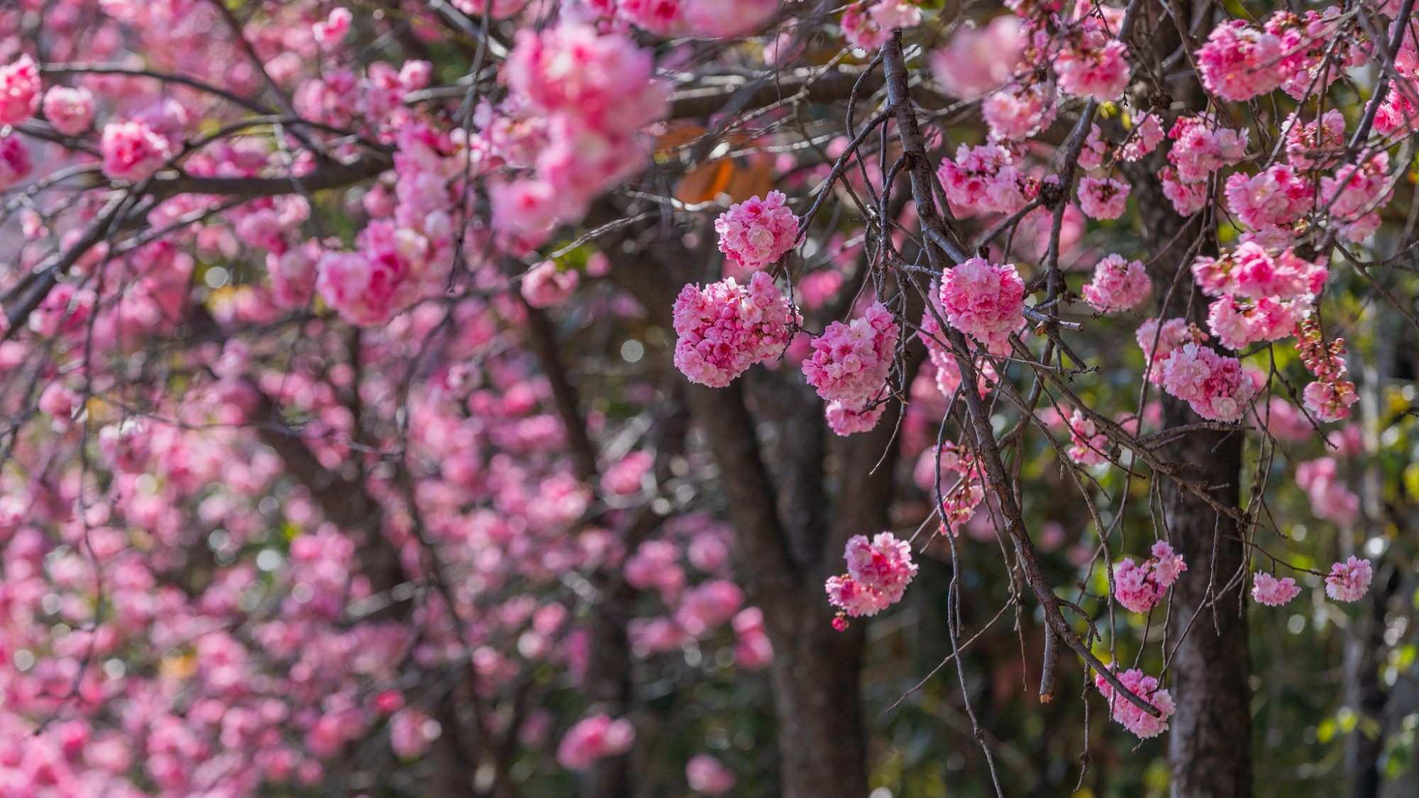 दक्षिण-पश्चिम चीन के युन्नान प्रांत की राजधानी खुनमिंग शहर में चेरी के फूल पूरी तरह खिले, हवा में लहरा रहा फूलों का गुलाबी सागर