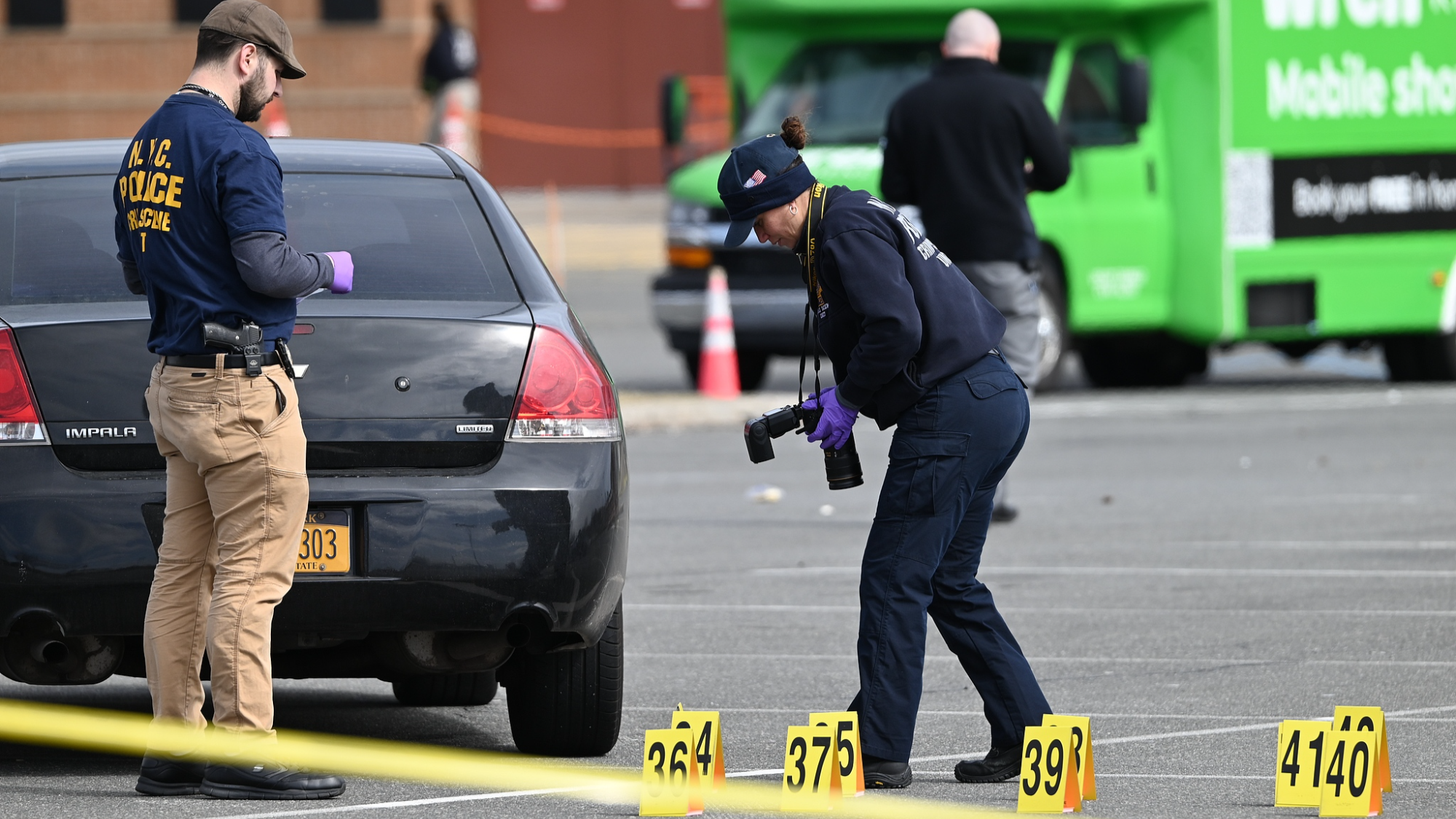 न्यूयॉर्क पुलिस को एक रिपोर्ट मिली कि एक व्यक्ति जीप में बंदूक लिए हुए है और सुबह करीब 5:19 बजे वह घटनास्थल पर पहुंचा। आगमन पर, पुलिस अधिकारियों ने गोलियों की आवाज सुनी और पाया कि एक 55 वर्षीय व्यक्ति उन्हें निशाना बना रहा था। पांच अधिकारियों ने गोलियां चलाईं, जिससे संदिग्ध घायल हो गया, जिसकी अस्पताल में मौत हो गई। कोई पुलिस अधिकारी घायल नहीं हुआ। तस्वीर में न्यूयॉर्क सिटी पुलिस विभाग की जांच टीम घटनास्थल पर जांच कर रही है। जांचकर्ताओं ने मुख्य साक्ष्य एकत्र करते समय साक्ष्य चिह्न लगाए।