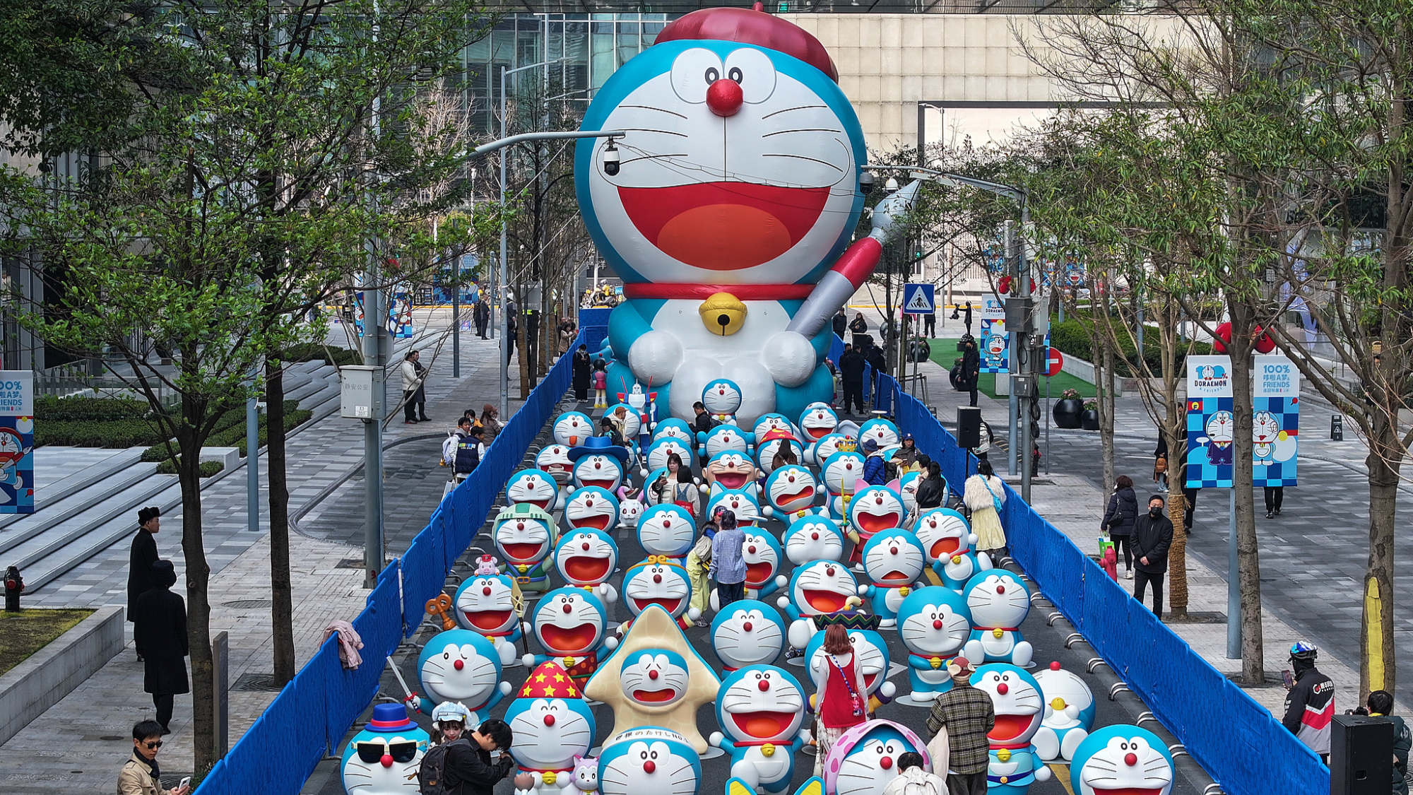 शांगहाई के जिंगआन जिले के एननी रोड पर विभिन्न आकृतियों की लगभग सौ डोरेमोन मूर्तियां और 12 मीटर ऊंचे विशाल इन्फ्लेटेबल डोरेमोन ने एक आश्चर्यजनक उपस्थिति दर्ज की, जिसने कई नागरिकों को रुकने और तस्वीरें लेने के लिए आकर्षित किया।