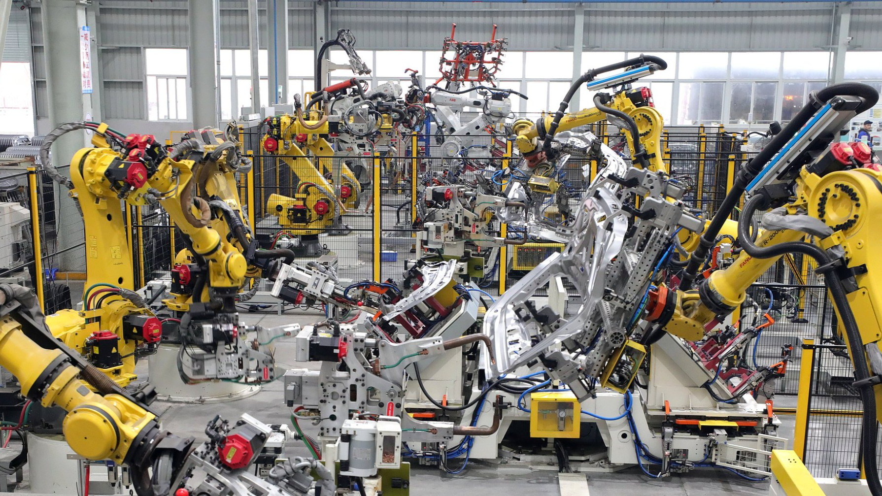 आनह्वेई प्रांत के चांगछिंग ऑटो पार्ट्स कंपनी लिमिटेड की उत्पादन कार्यशाला में बुद्धिमान रोबोट भुजाएँ उत्पादन लाइन पर काम कर रही हैं