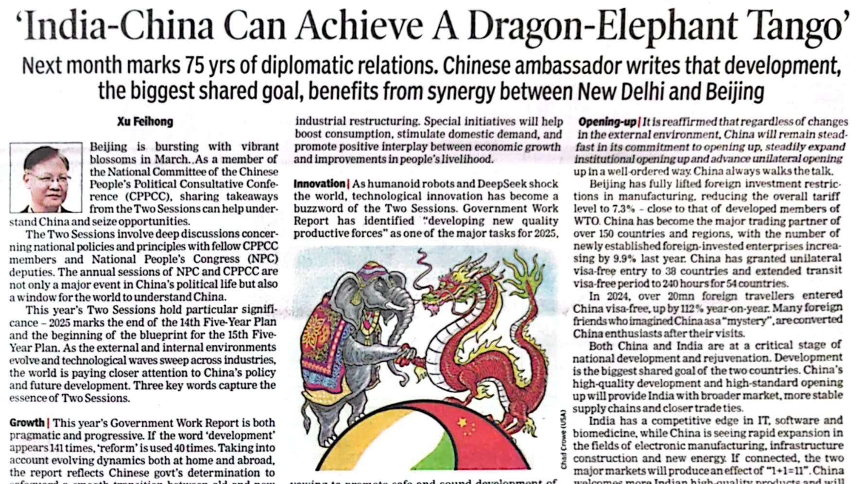 भारत और चीन ड्रैगन-हाथी टैंगो हासिल कर सकते हैं: भारत में चीनी राजदूत