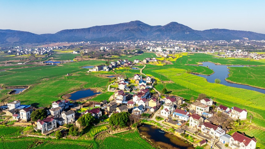 वसंत में पूर्वी चीन के आनहुइ प्रांत के तांगथु जिले के ग्रामीण क्षेत्र के सुंदर दृश्य