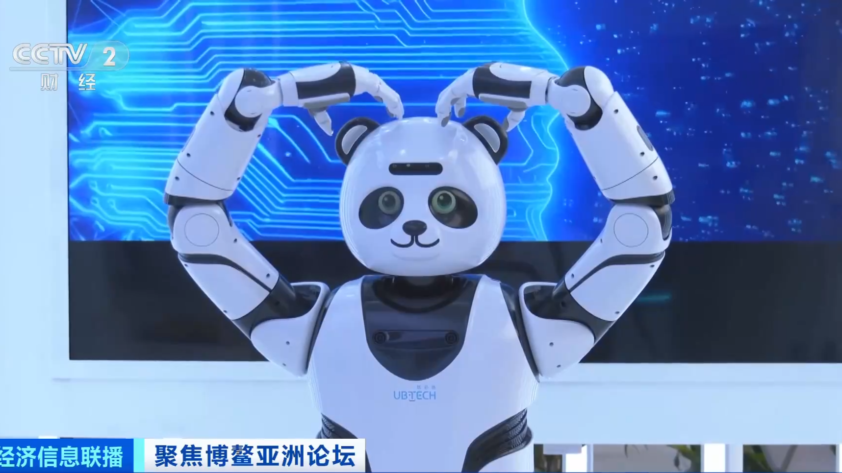 बोआओ एशिया मंच में पांडा के आकार के रोबोट पर लोगों का ध्यान