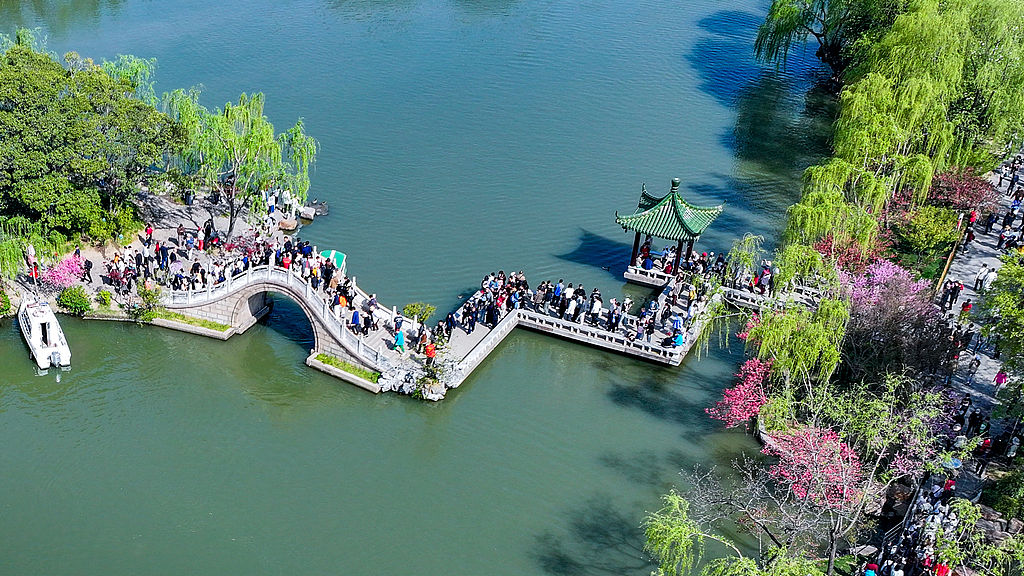 ये तस्वीरें 6 अप्रैल को पूर्वी चीन के च्यांगसू प्रांत के यांगचो शहर में ड्रोन से ली गई हैं। फोटो में आप देख सकते हैं कि छिंगमिंग त्योहार के तीन दिवसीय छुट्टी के दौरान यांगचो शहर के स्लेन्डर वेस्ट लेक दर्शनीय क्षेत्र पर सैलानियों की जबरदस्त भीड़ उमड़ी। बता दें कि 4 अप्रैल को चीनी परंपरागत छिंगमिंग त्योहार था। इसके अवसर पर 4 से 6 अप्रैल तक पूरे चीन में 3 दिन की राष्ट्रीय छुट्टी थी। इसके दौरान बड़ी संख्या में चीनी लोग वसंत ऋतु की हरियाली का आनंद लेने के लिये बाहर निकले थे।