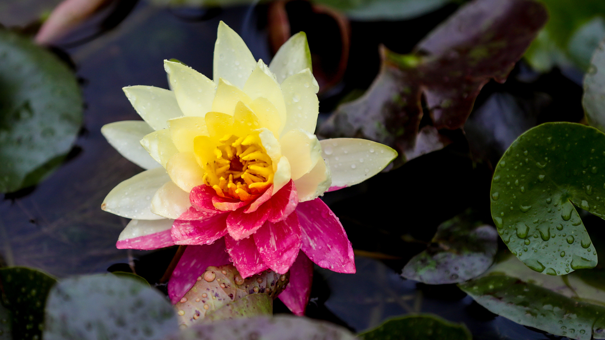 चीनी विज्ञान अकादमी के वुहान बॉटनिकल गार्डन के जलकमल प्रदर्शन क्षेत्र और जलीय पारिस्थितिक क्षेत्र में 200 से अधिक प्रकार के जलकमल के फूल खिल रहे हैं, जिनमें एक दो रंग का जलकमल शामिल है।