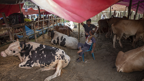 2 जून को ईद-उल-अज़हा के अवसर पर बांग्लादेश की राजधानी ढाका में एक अस्थायी पशु बाजार में मवेशियों की तलाश में युवा ग्राहक।