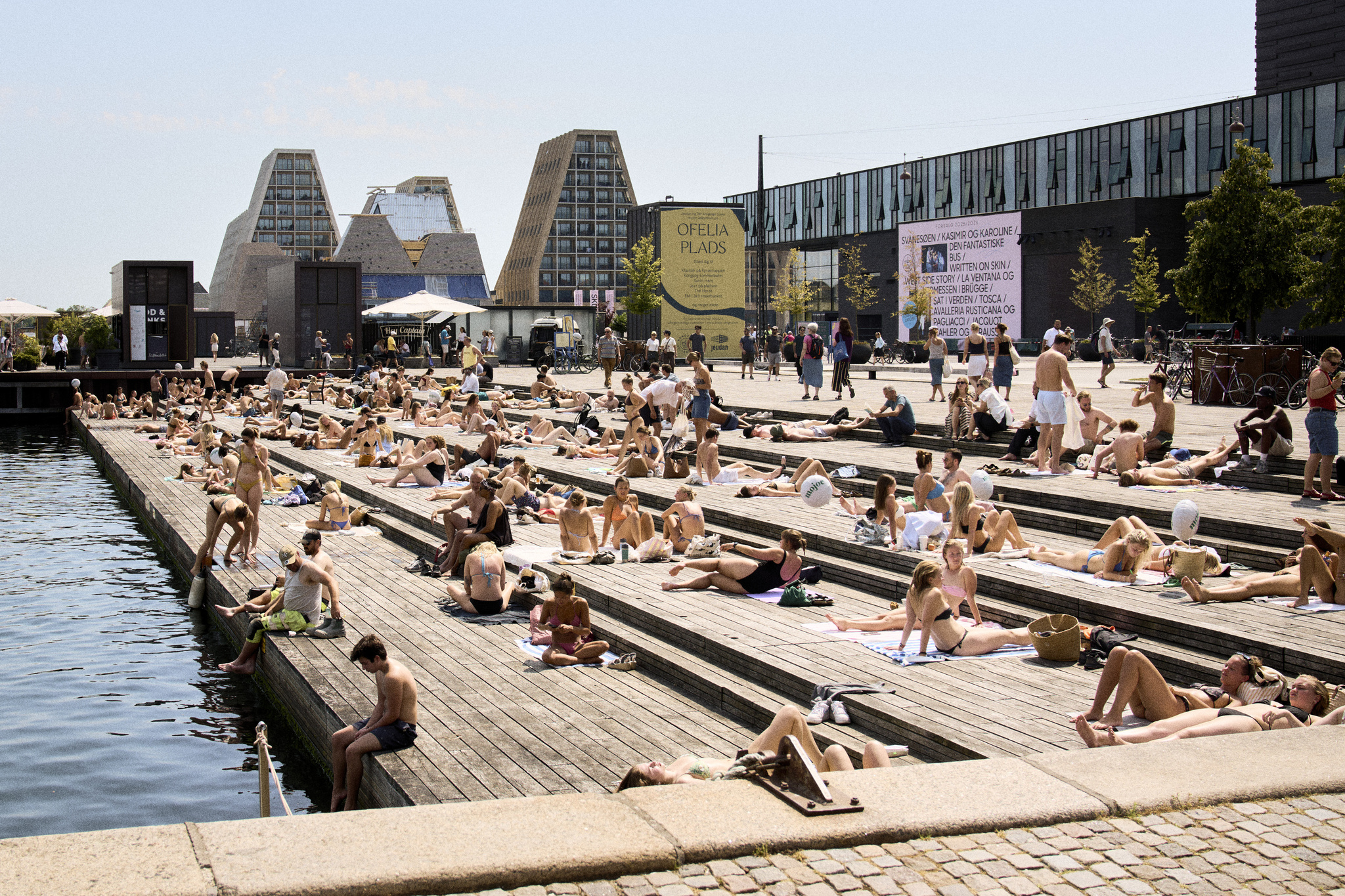 डेनमार्क के कोपेनहेगन में लोग धूप सेंकने का आनंद लेते हैं