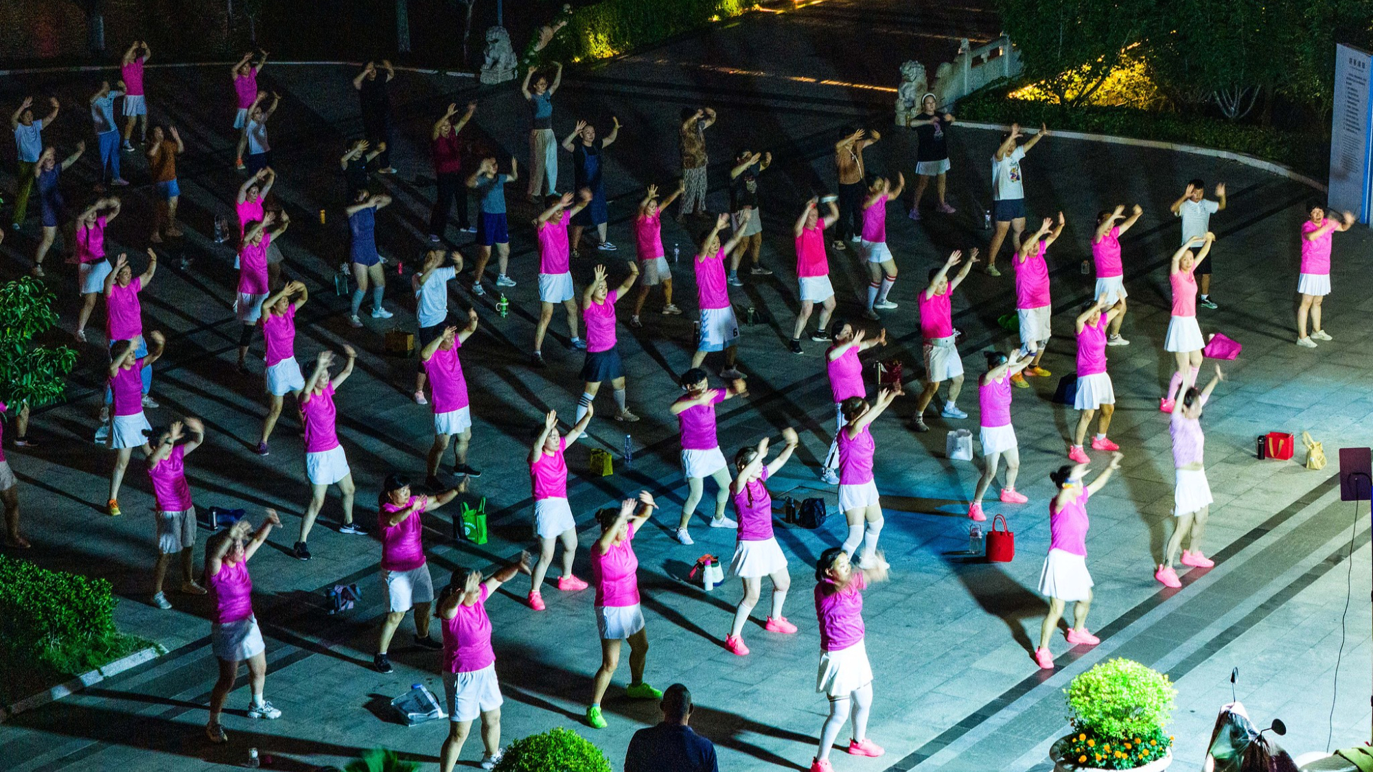 दक्षिण चीन के जिआंगसू प्रांत के हुआइआन नागरिक चौक पर गर्मियों की रात में नागरिक चौक पर नाचते हैं। भीषण गर्मी के आगमन के साथ, स्थानीय लोग शाम का उपयोग फिटनेस गतिविधियों के लिए करने के लिए उत्सुक हैं।