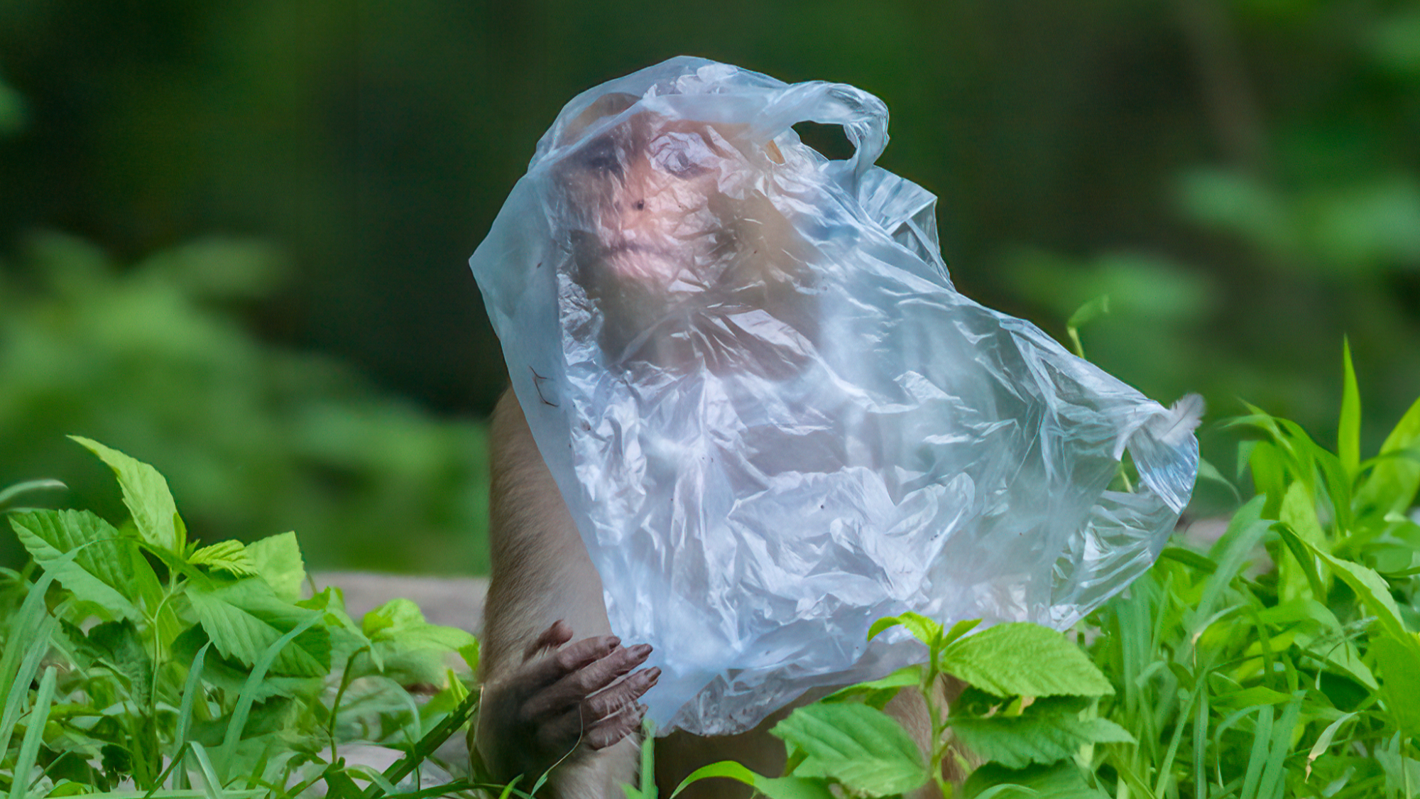 चंडीगढ़: प्लास्टिक बैग से खेलता बंदर