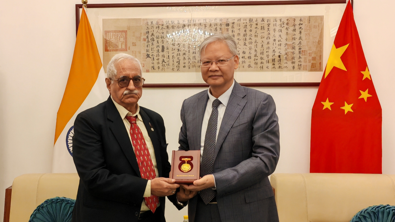 चीनी राजदूत ने भारतीय मित्र को "जापानी अतिक्रमण विरोधी युद्ध विजय की 80वीं वर्षगांठ" का स्मारक पदक दिया