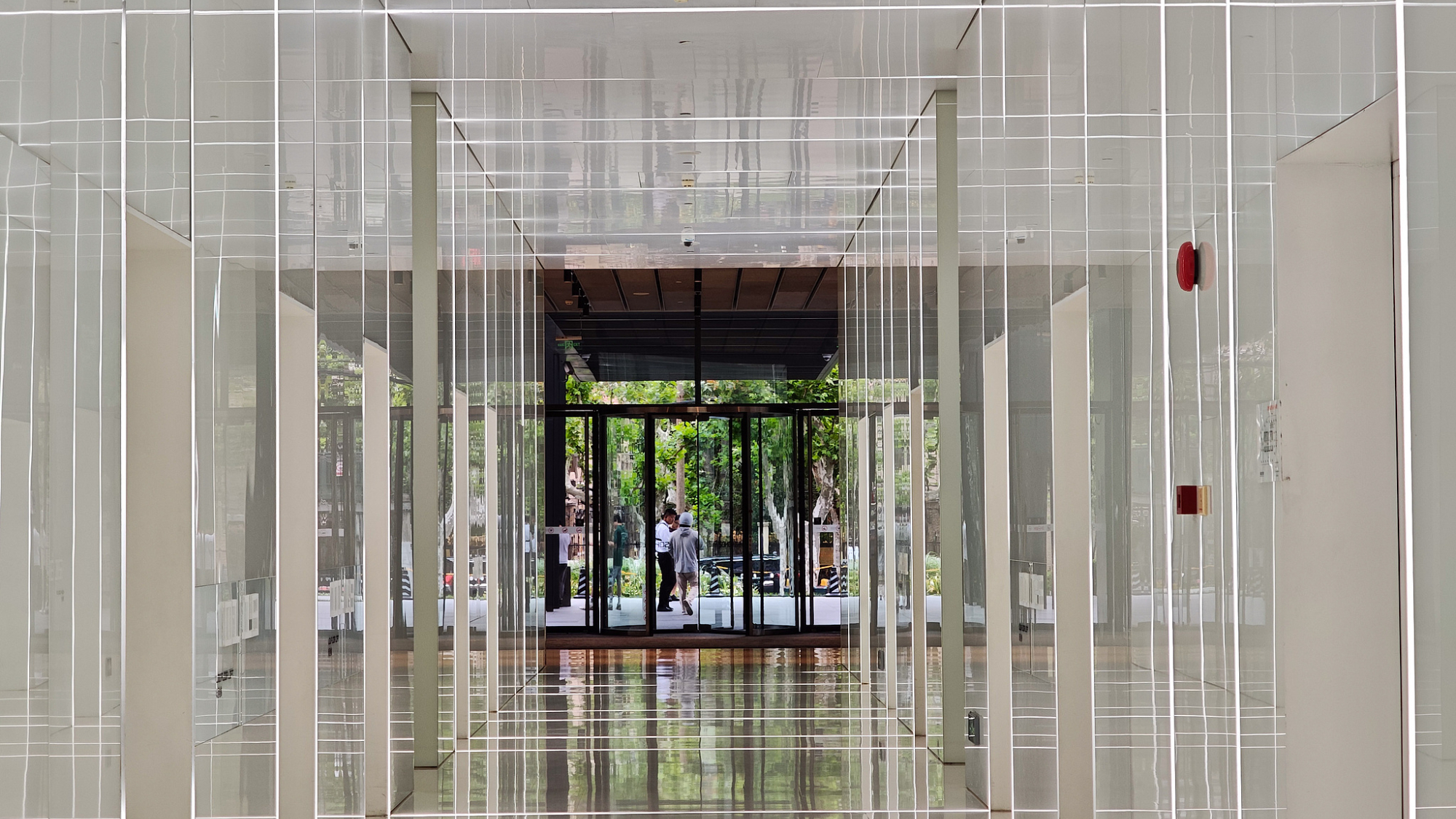 शांगहाई के एक कार्यालय भवन की लिफ्ट लॉबी में एक विज्ञान-कथा दृश्य