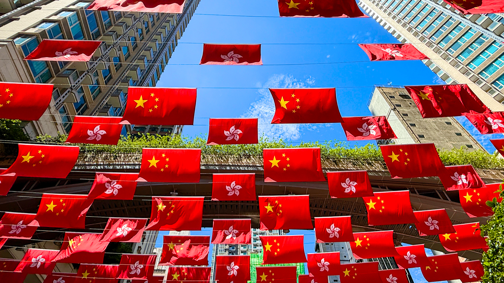 हांगकांग की सड़कें चीनी राष्ट्रीय दिवस मनाने के लिए राष्ट्रीय झंडों से सजी हुई हैं