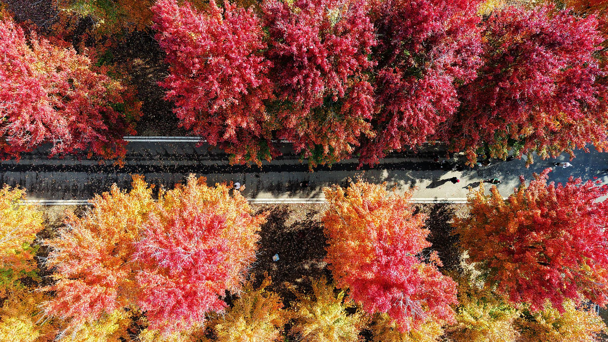 चीन के शानतोंग प्रांत के छिंगताओ शहर में लाल मेपल के पत्ते पर्यटकों को आकर्षित करते हैं।