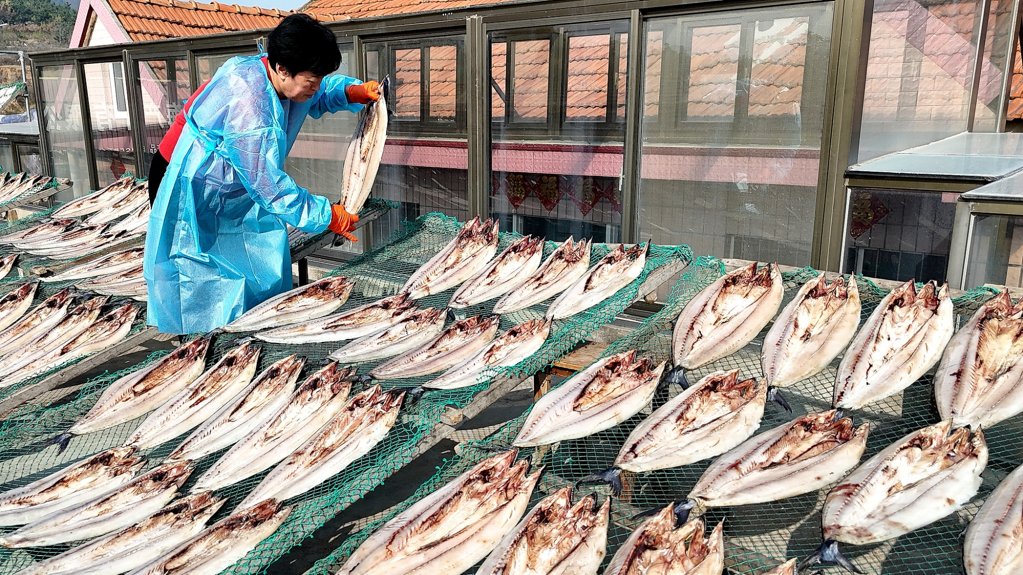 शानडोंग प्रांत के मछुआरे मछलियों को सुखाने के लिए अच्छे मौसम का फ़ायदा उठा रहे हैं