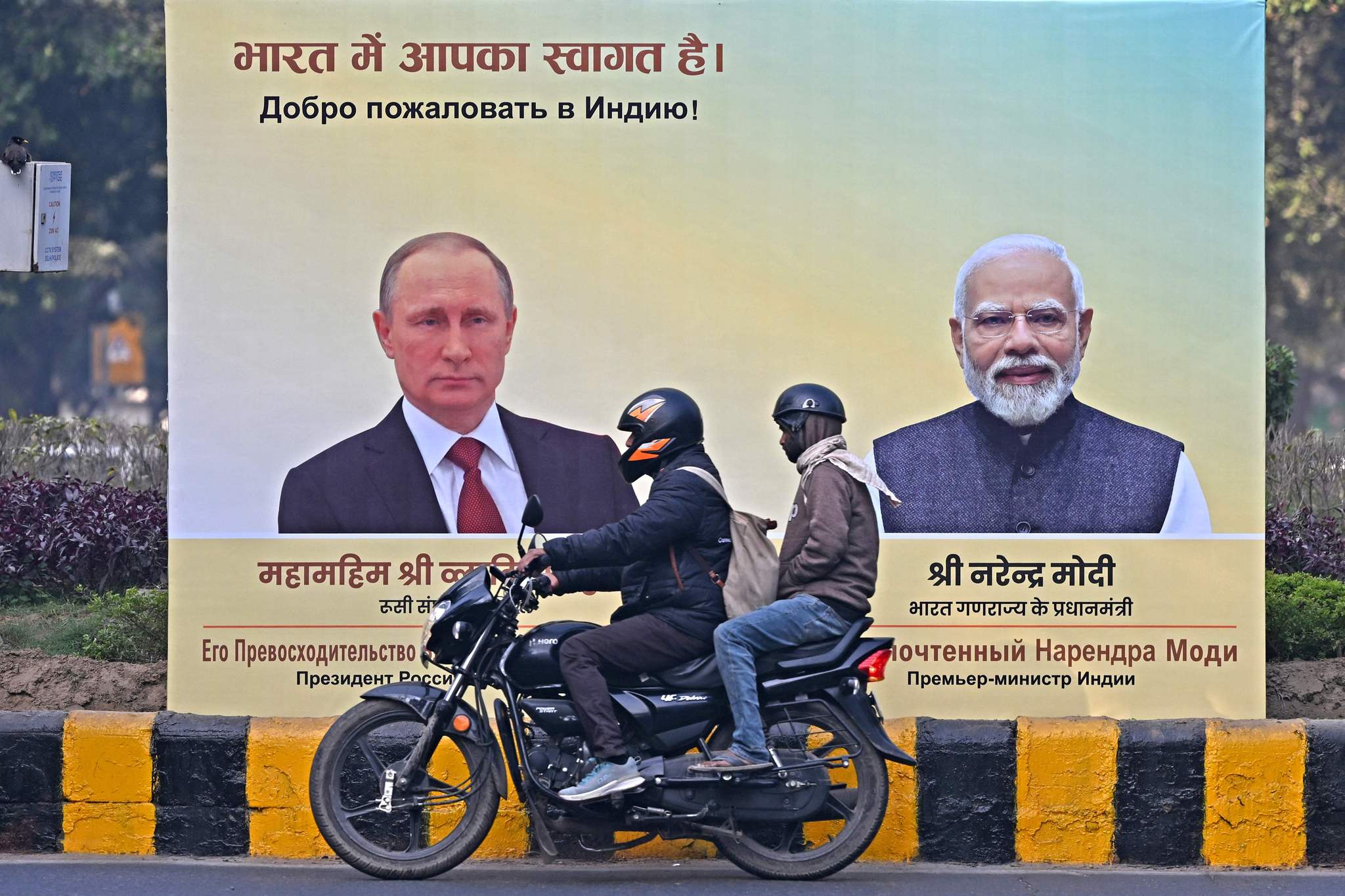 मोदी और पुतिन की तस्वीरों वाले पोस्टर भारत के नई दिल्ली की सड़कों पर सजे हैं