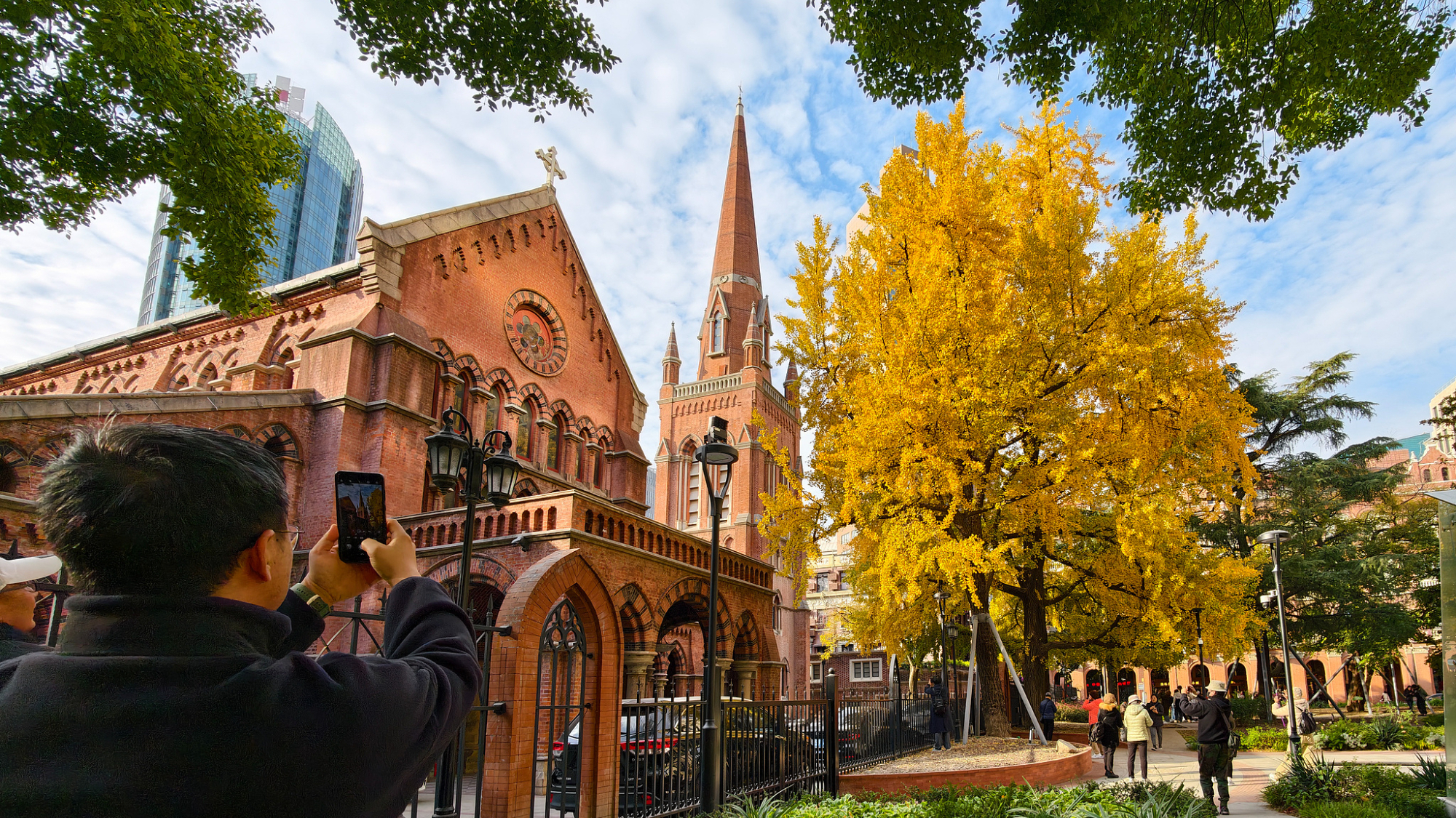 शांगहाई के डाउनटाउन में पुराने जिन्कगो पेड़ अपने खूबसूरती के चरम समय में हैं