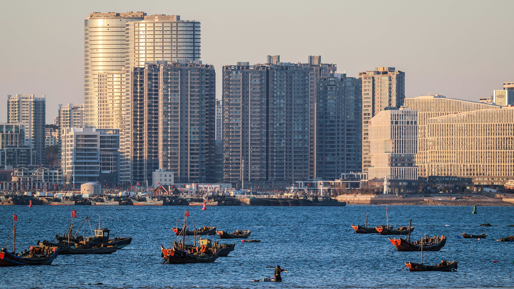 छिंगताओ के समुद्रतटीय क्षेत्र का शीतकालीन दृश्य