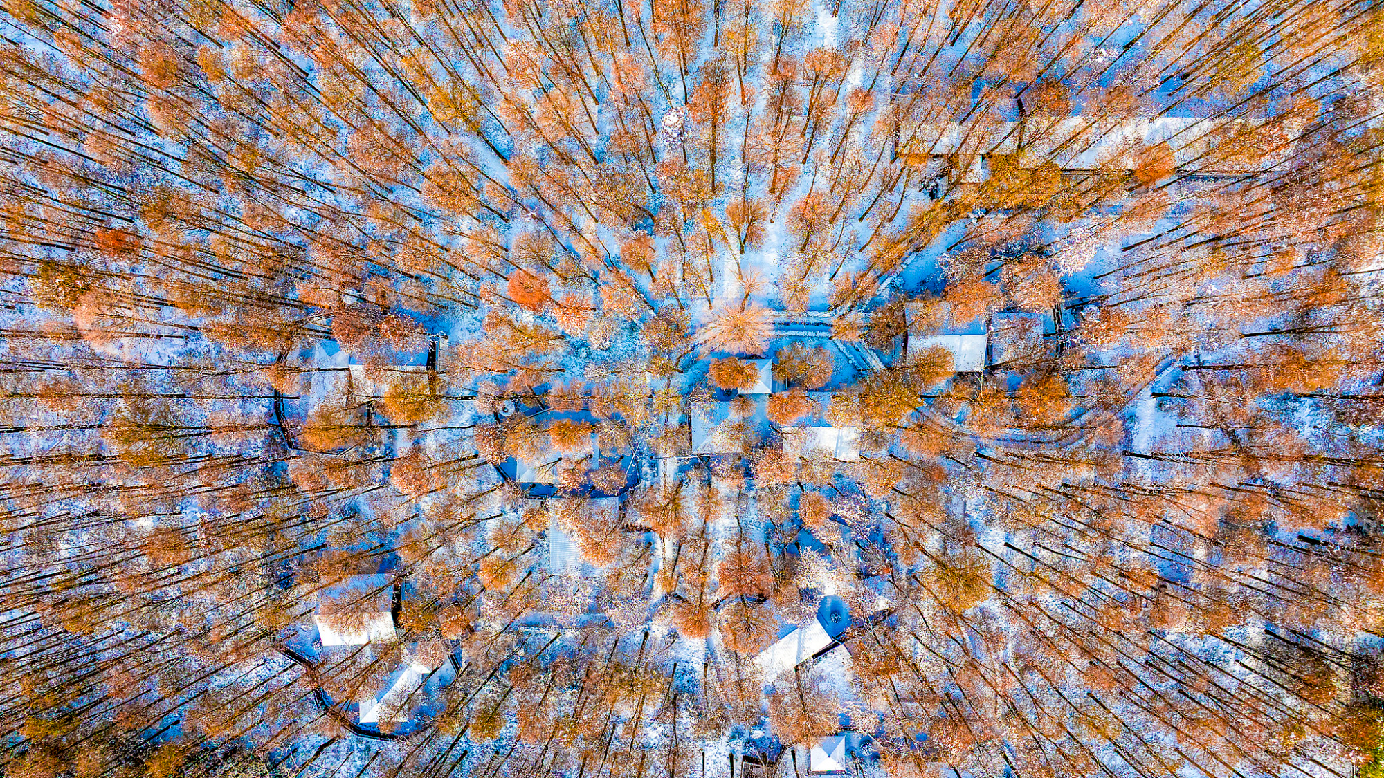 च्यांगसू प्रांत के सिहोंग में बर्फ से ढके खूबसूरत देवदार के जंगल