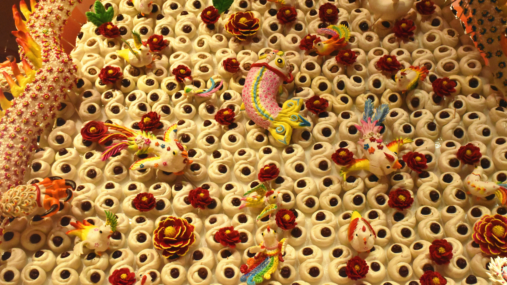 चीन कला एवं शिल्प संग्रहालय में 4.5 मीटर ऊँचा और 3.6 मीटर व्यास का फूल के आकार का मोमो(steamed buns) अनावरण किया गया है, जो कई आगंतुकों को आकर्षित कर रहा है। इस कलाकृति में फूल और राशि चक्र के जानवरों जैसे समृद्ध तत्व शामिल हैं, और इसे पूरा करने में 18 लोगों को एक महीना लगा।