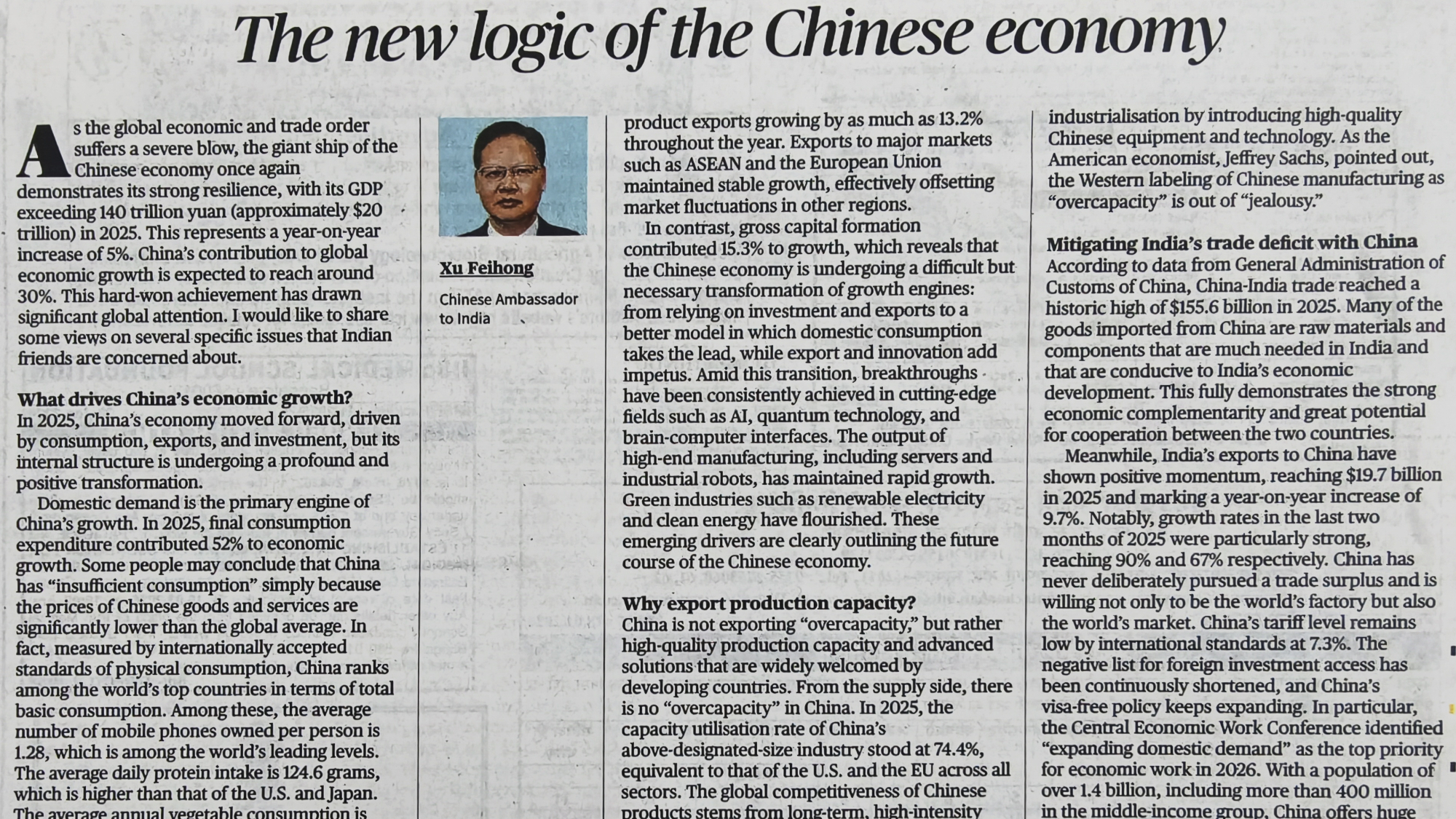 भारत के प्रमुख अंग्रेजी समाचार पत्र 'द हिंदू' में चीनी राजदूत का लेख प्रकाशित