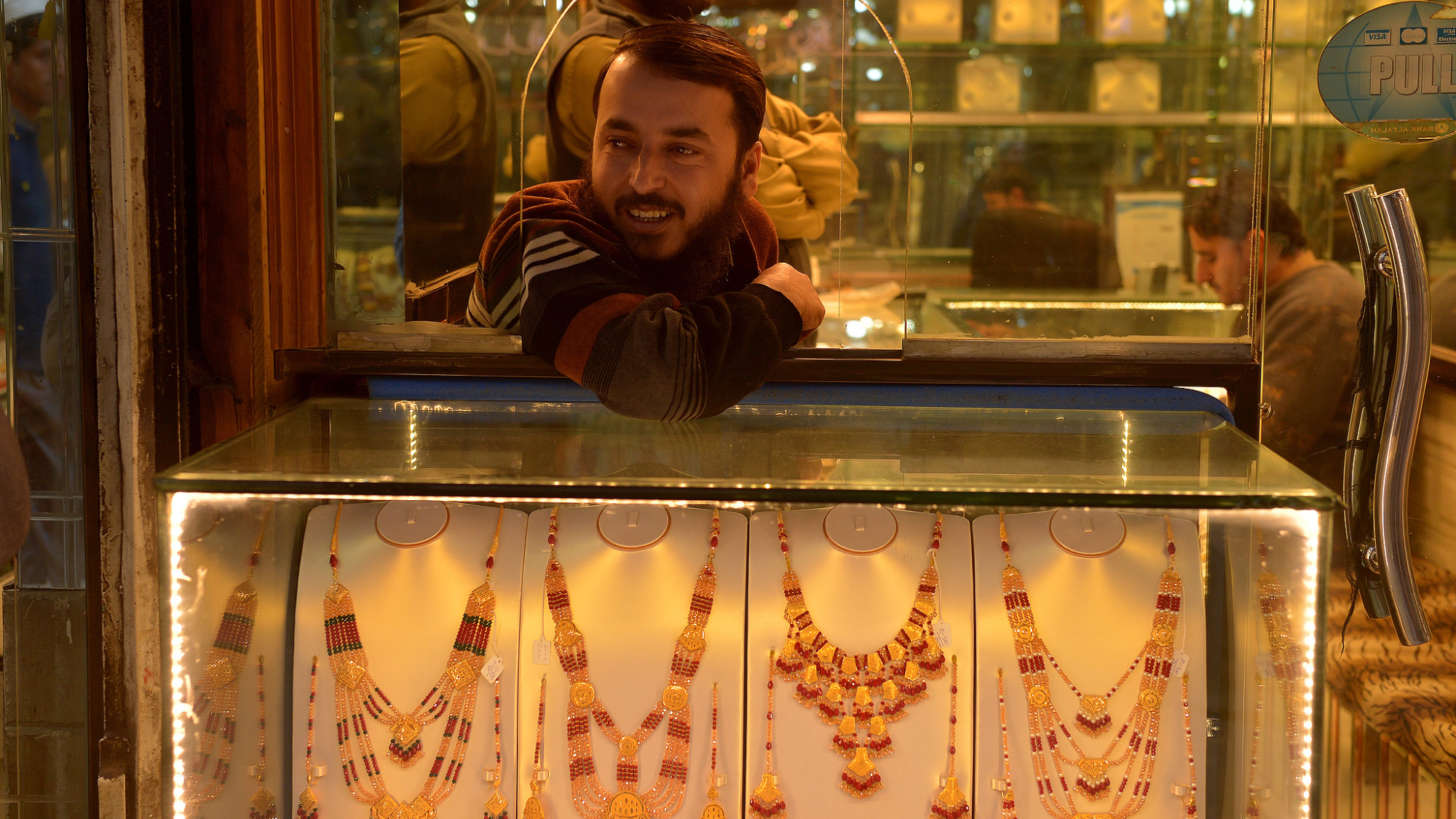 28 जनवरी को न्यूयॉर्क मर्केंटाइल एक्सचेंज पर सोने के वायदा भाव ने 5,300 डॉलर प्रति औंस के ऐतिहासिक स्तर को पार कर लिया। तस्वीर में पाकिस्तान के पेशावर में एक सुनार बाजार में ग्राहकों को सोने के आभूषण बेचते हुए दिखाई दे रहा है।