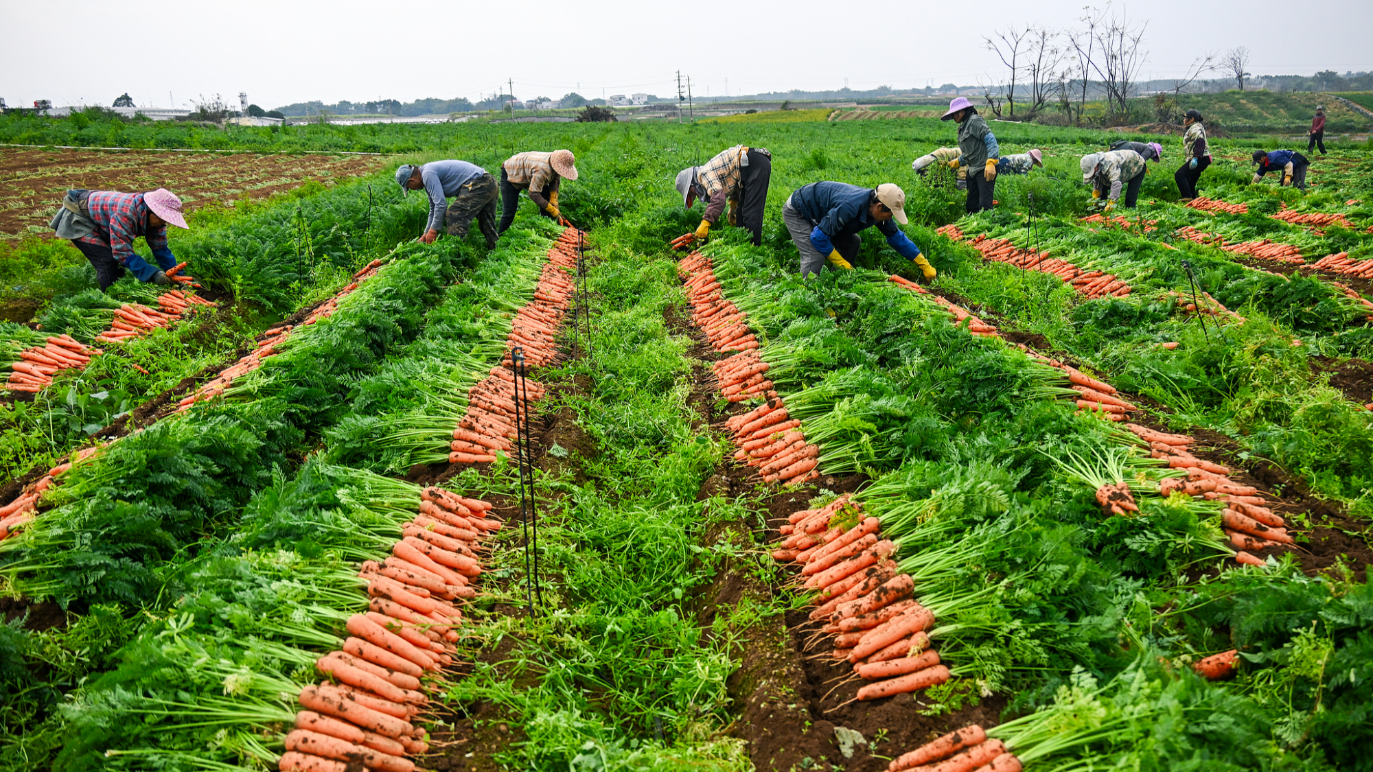 गाजर की कटाई करते किसान