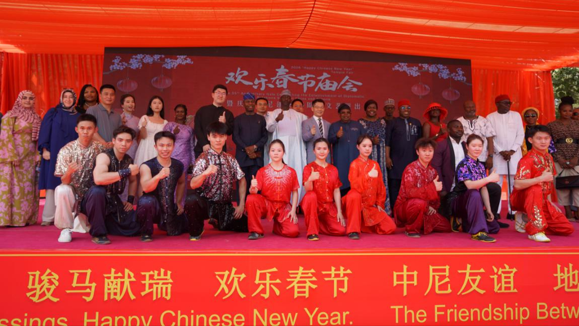 अबुजा में आयोजित "हैप्पी चीनी नववर्ष" मेले में सीएमजी "स्प्रिंग फेस्टिवल गाला" का प्रचार वीडियो प्रसारित