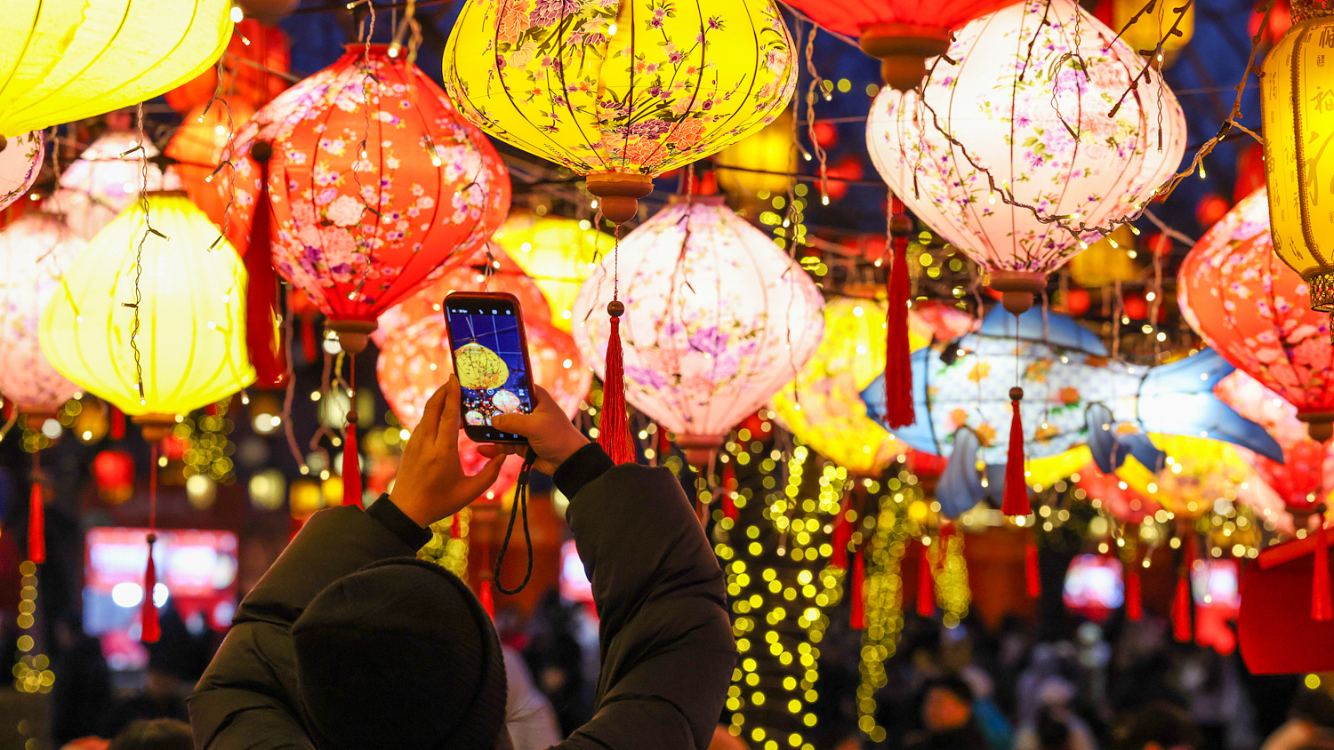 पेइचिंग के हाइतियान जिले में टोंगकिंग स्ट्रीट पर स्प्रिंग फेस्टिवल के लिए लालटेन रोशन है।