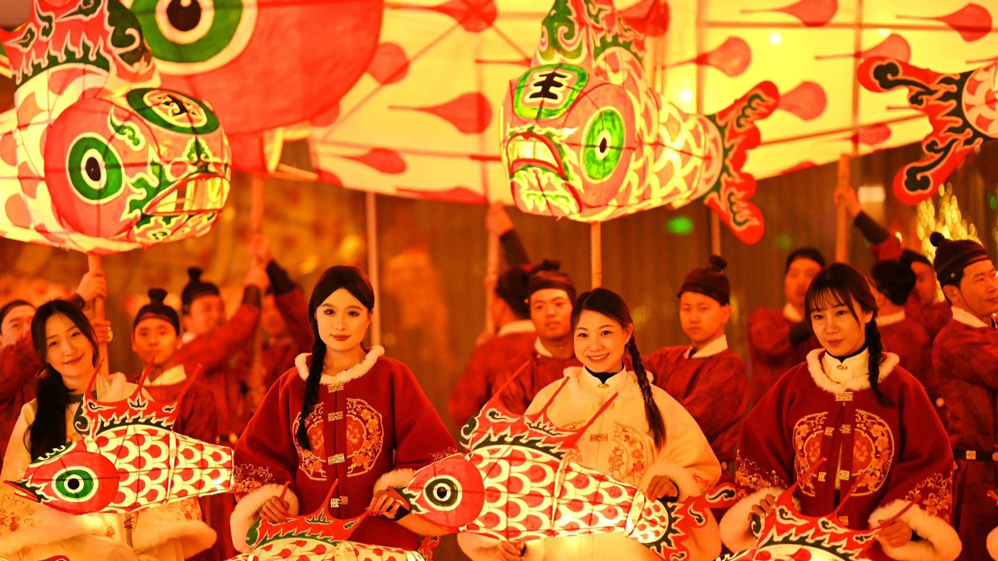 पेइचिंग में लालटेन उत्सव के दौरान फिश लालटेन परेड प्रदर्शन।