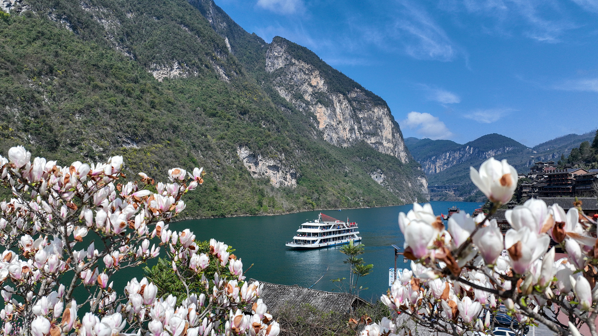 छोंगछिंग में वूजियांग नदी के किनारे वसंत ऋतु का खूबसूरत नजारा