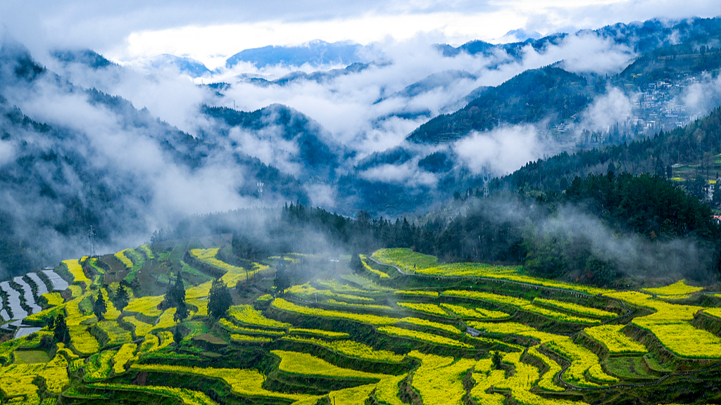 दक्षिण पश्चिम चीन के छोंगछिंग शहर की यूयांग काउंटी में स्थित छ्यानतांगथ्येन नामक सीढ़ीदार खेत इन दिनों अपने सुनहरे रूप में हैं। मंगलवार की सुबह कोहरे की हल्की चादर के बीच पीली सरसों के फूल और हरी मेड़ें ऐसा अद्भुत ग्रामीण नज़ारा पेश कर रही थीं कि फोटोग्राफरों और पर्यटकों का ध्यान खिंचा बिना नहीं रहा। पहाड़ी ढलानों पर बसे यह खेत प्रकृति और खेती के अद्भुत समन्वय को दर्शाते हैं।