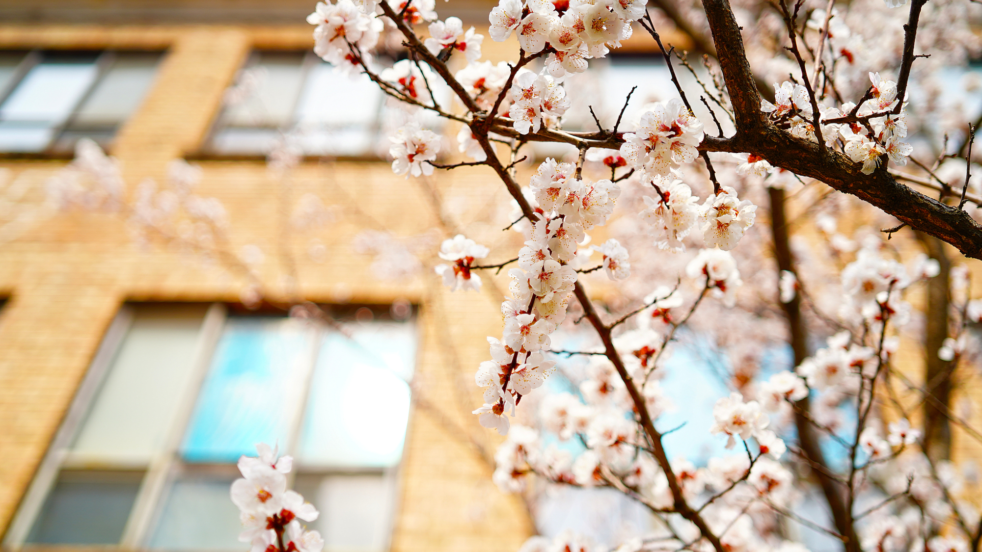 पेइचिंग के 798 आर्ट डिस्ट्रिक्ट में आड़ू के फूल पूरी तरह खिले हुए हैं।