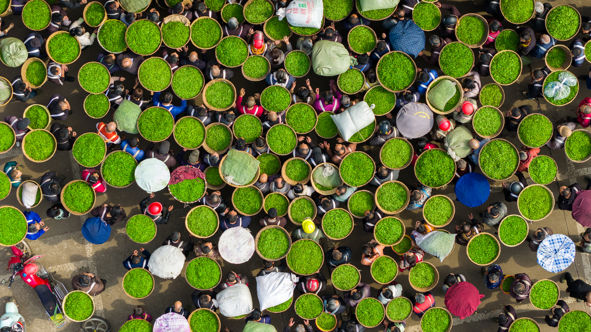 चीन के सछ्वान प्रांत के याआन फ्रेश टी ट्रेडिंग मार्केट में पीक सीजन