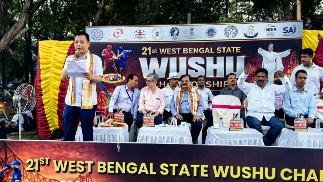छिन योंग ने 21वीं पश्चिम बंगाल वुशु चैंपियनशिप के उद्घाटन समारोह में भाग लिया