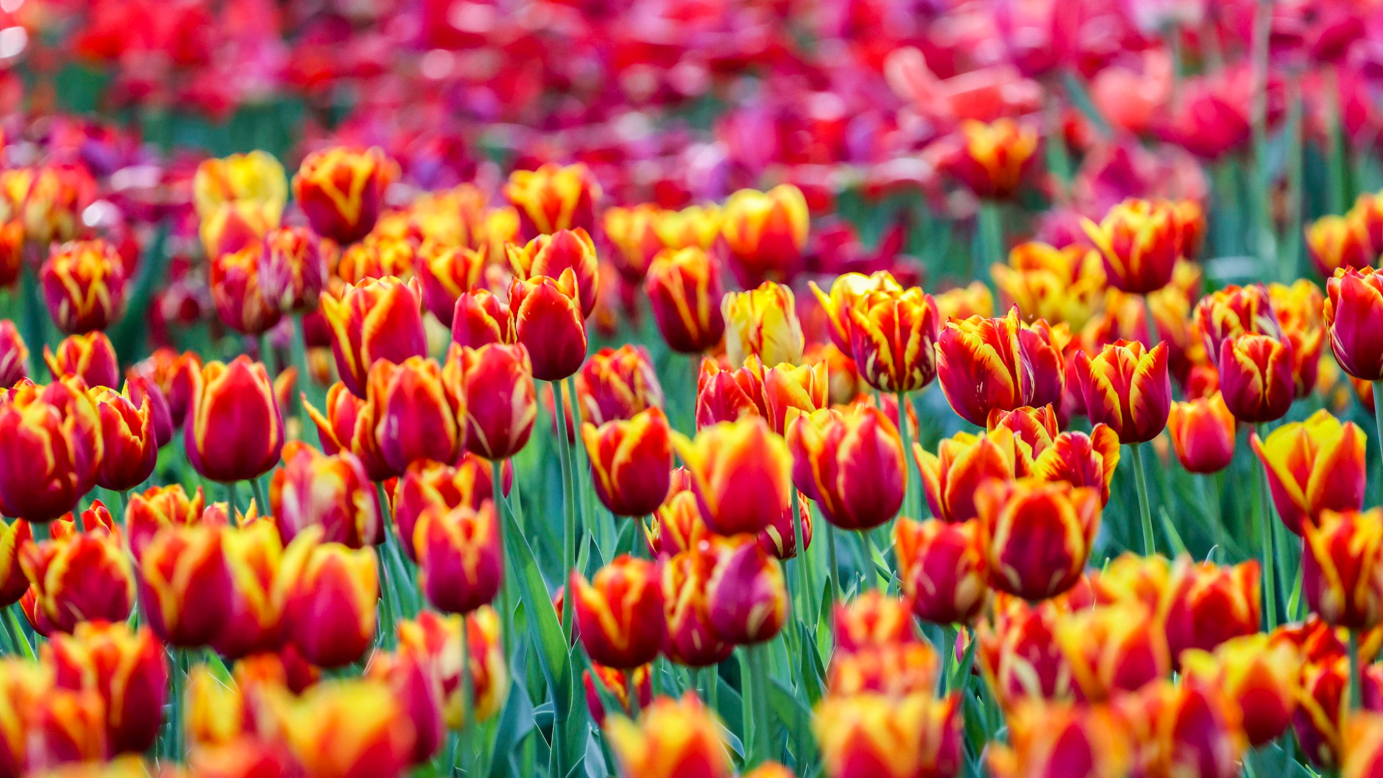 ट्यूलिप के फूल पूरी तरह खिले हुए हैं