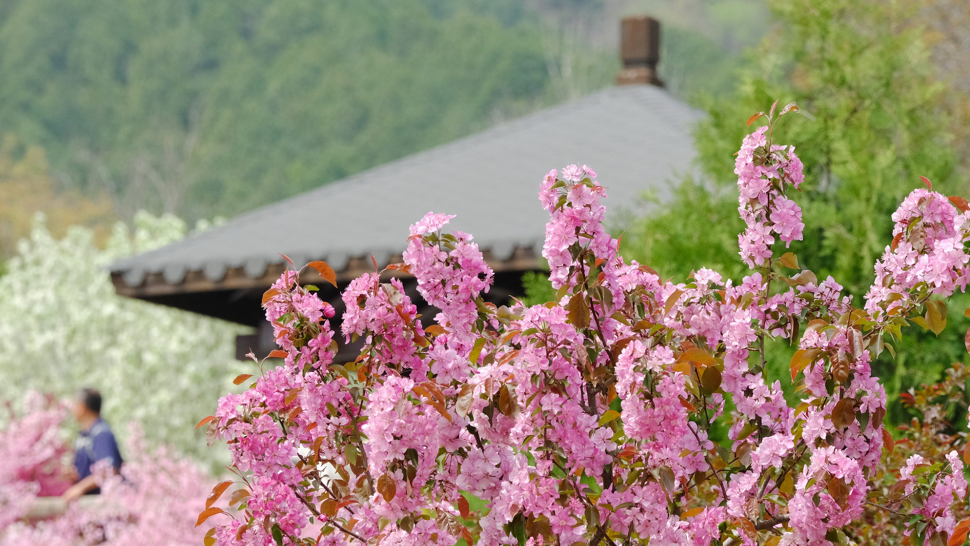 पेइचिंग नेशनल बोटैनिकल गार्डन में क्रैबएप्पल के फूल पूरी तरह खिले हुए हैं