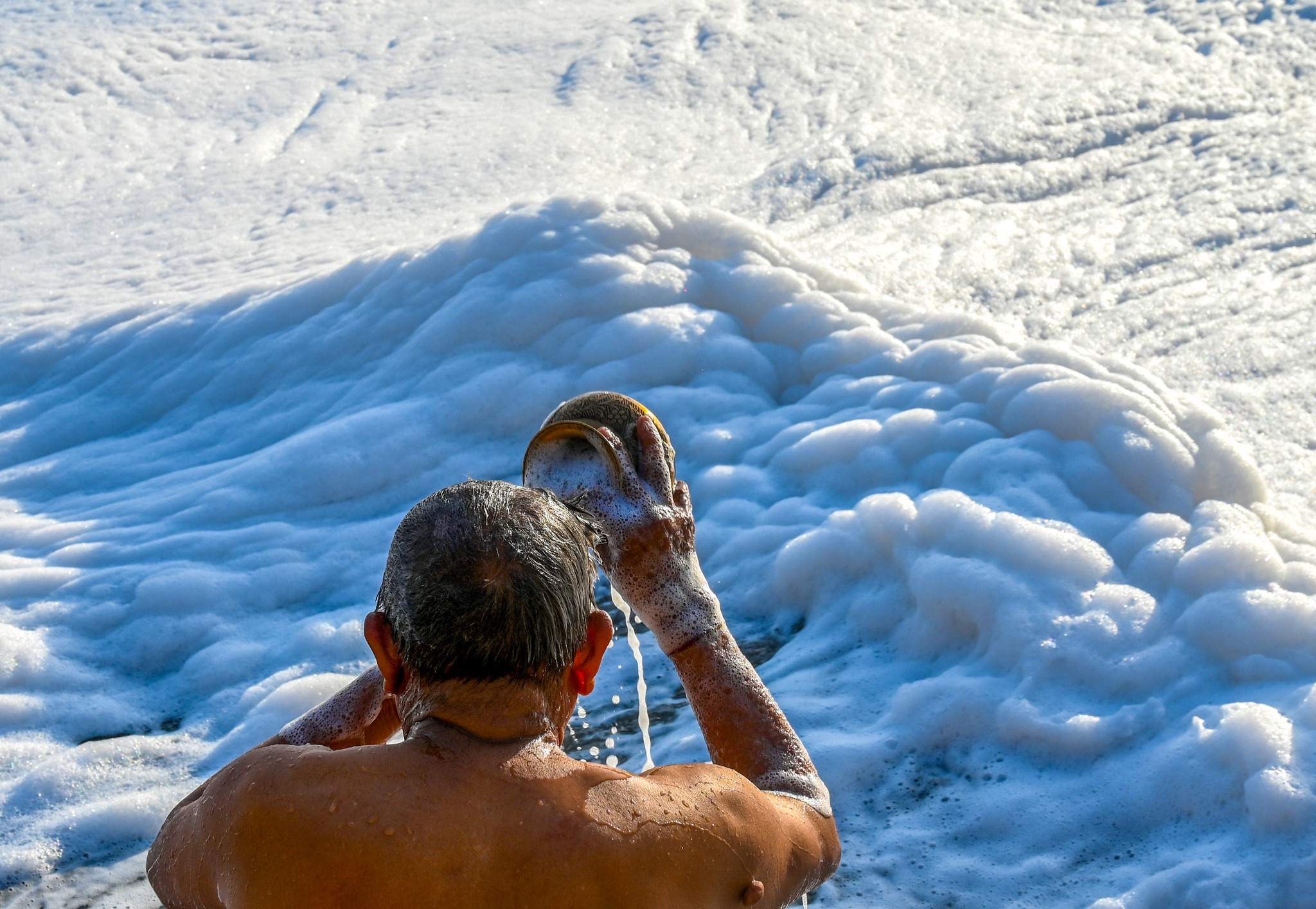 22 अप्रैल को, भारत के नई दिल्ली में, यमुना नदी के कालिंदीकुंजी खंड की सतह पर ज़हरीले सफेद झाग की एक मोटी परत तैरती हुई दिखाई दी। पृथ्वी दिवस पर ली गई ये तस्वीरें लगातार बने रहने वाले इस झाग को दर्शाती हैं, जो फॉस्फेट, डिटर्जेंट और अनुपचारित औद्योगिक अपशिष्ट जल की उच्च सांद्रता के कारण उत्पन्न हुआ है और नदी के बिगड़ते स्वास्थ्य की स्पष्ट याद दिलाता है। "ग्रीष्मकालीन कार्य योजना 2026" और हालिया सफाई प्रयासों के बावजूद, विशेषज्ञ बताते हैं कि ओहरा बांध पर जैव रासायनिक ऑक्सीजन मांग (बीओडी) का स्तर सुरक्षित सीमा से काफी ऊपर बना हुआ है, जिससे नदी का नाजुक पारिस्थितिकी तंत्र बाधित हो रहा है और आसपास के निवासियों के स्वास्थ्य के लिए खतरा बना हुआ है।